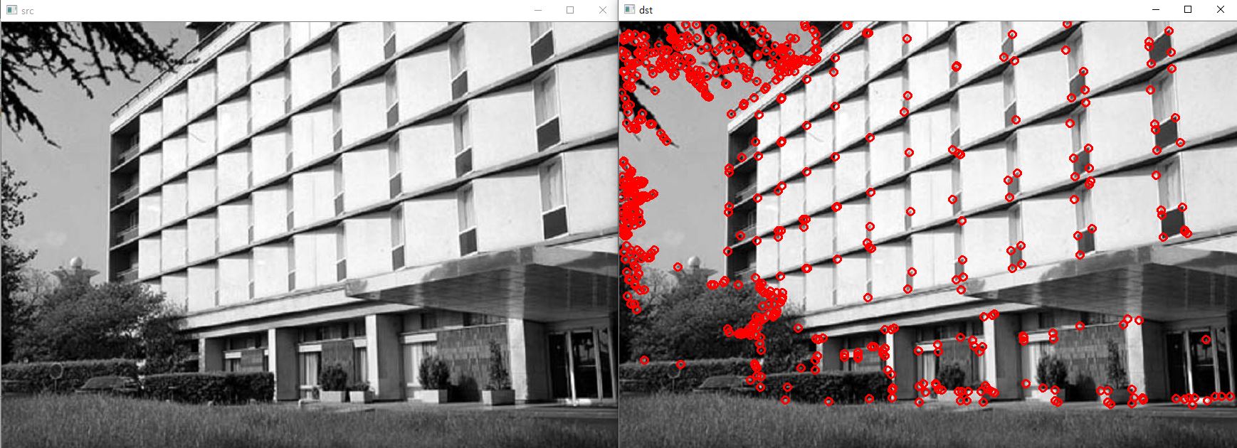 void cornerHarris(InputArray src, OutputArray dst, int blockSize, int ksize, double k,