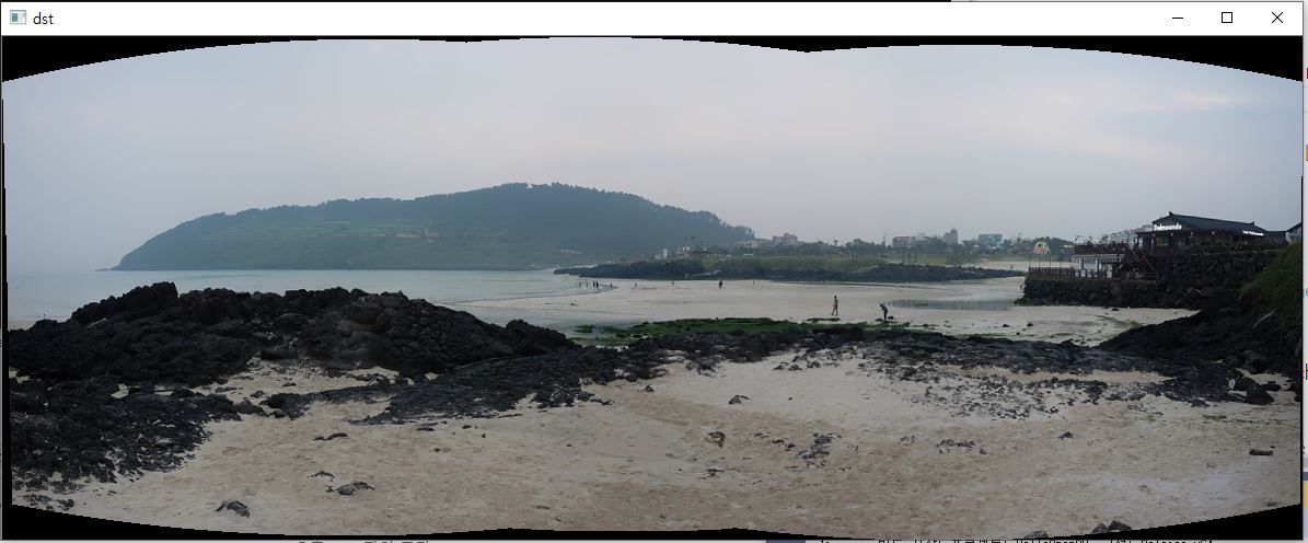 영상 3개를 Stitcher 객체를 이용하여 이어 붙이기