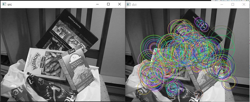 SIFT알로리즘은 특징점 검출하는 기능뿐만 아니라 특징점 주변의 픽셀 값을 이용한 기술자(descriptor)계산 방법도 포함