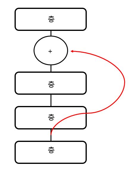 하위 층의 출력이 상위 층의 활성화 출력에 연결되는 것이 아니라 더해진다.