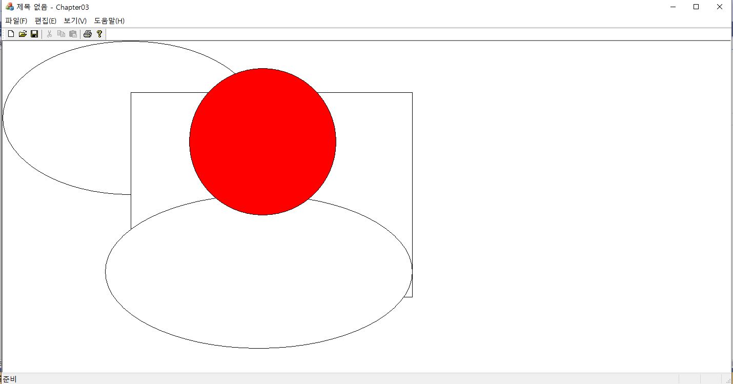 Ellipse() 함수를 통하여 타원을 그릴 수 있다. 기본적으로 2개의 좌표 값이 필요하고