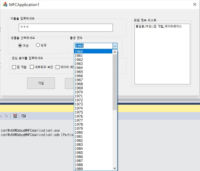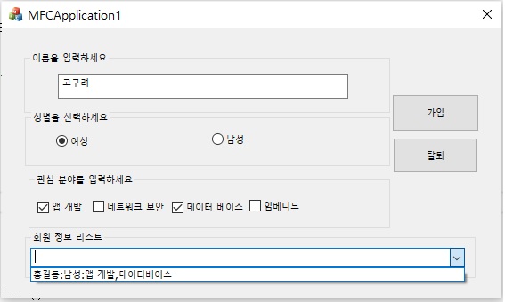 예제 : 리스트박스를 이용하여 회원 정보 수집하기