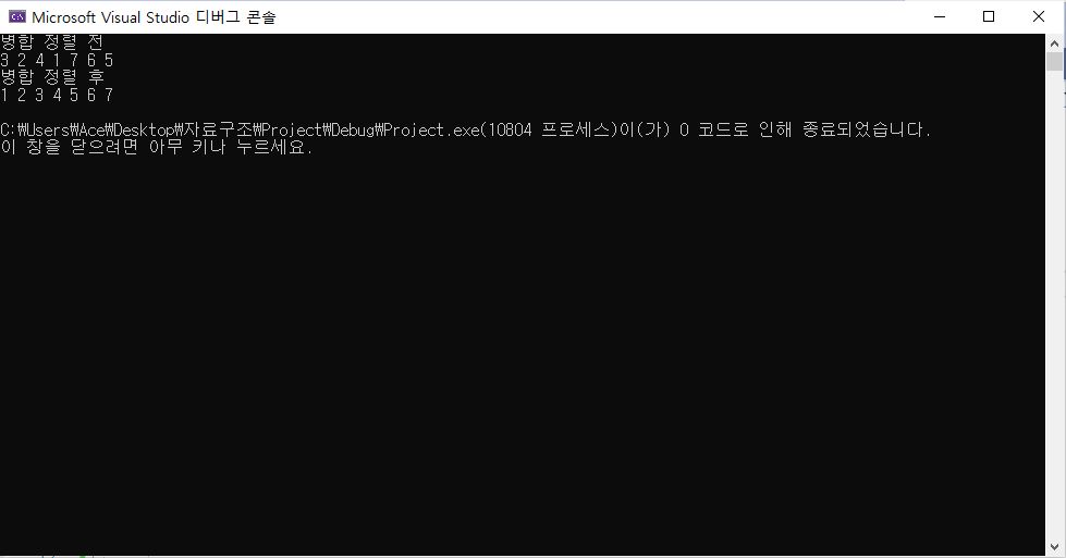 병합 정렬은 재귀를 통하여 실행한다. 재귀를 통해 분할하고 결합을 통해 재귀를 탈출해 반환한다.