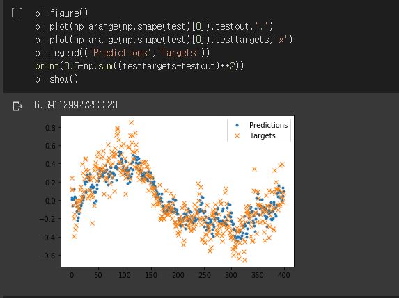 목표값과 출력값의 차이를 제곱하고 이것들의 합을 사용해서 에러를 계산하도록한다.