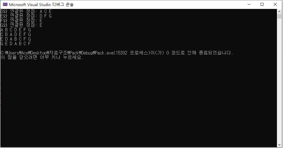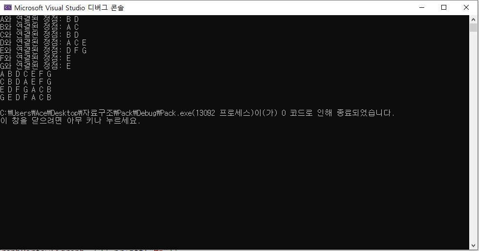 첫 시작 노드에서 연결되면 노드에 추가하고, 더이상 연결할 노드가 없으면 POP과정을 통해서
