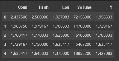 우선 date는 크게 영향을 줄거 같지 않아 제거한 후, Close와 Adj Close는 비슷하여 하나로 통합 후, Y라는 변수로 추가하였습니다.