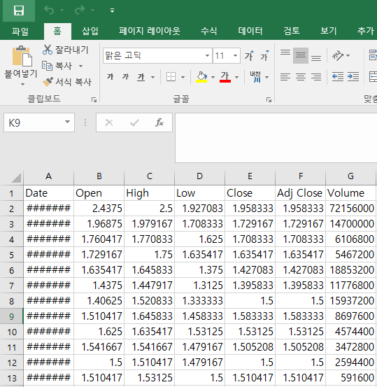 csv 파일을 보시면 시계열로 데이터가 나열되어 있음을 확인할 수 있습니다.