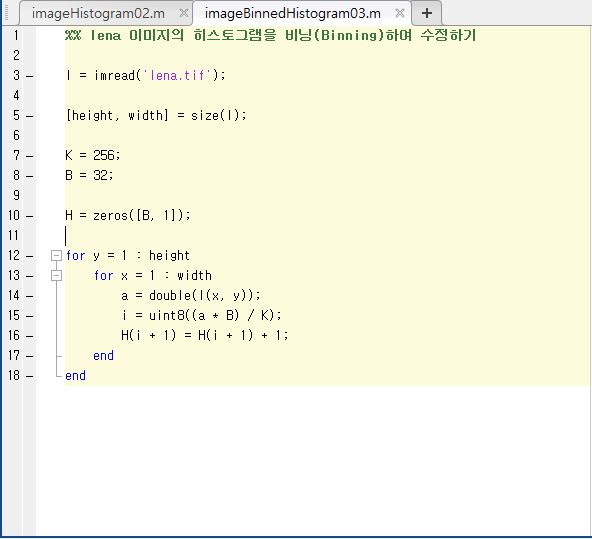 따라서 Binning 과정을 통해 다양한 강도 값을 히스토그램 열에 결합하여야 합니다.