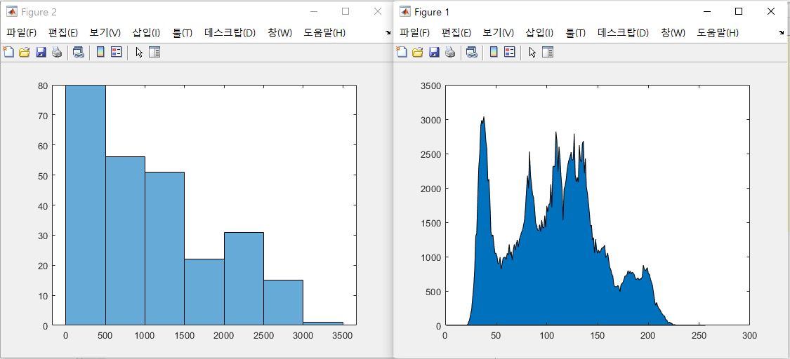 히스토그램은 영상의 발기 값의 분포를 알기 위하여 사용하는 방법입니다.