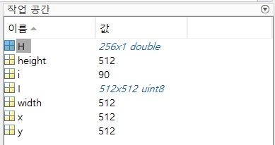 여기서 H의 경우 저희가 작업한 히스토그램의 값이 들어있는 배열입니다.