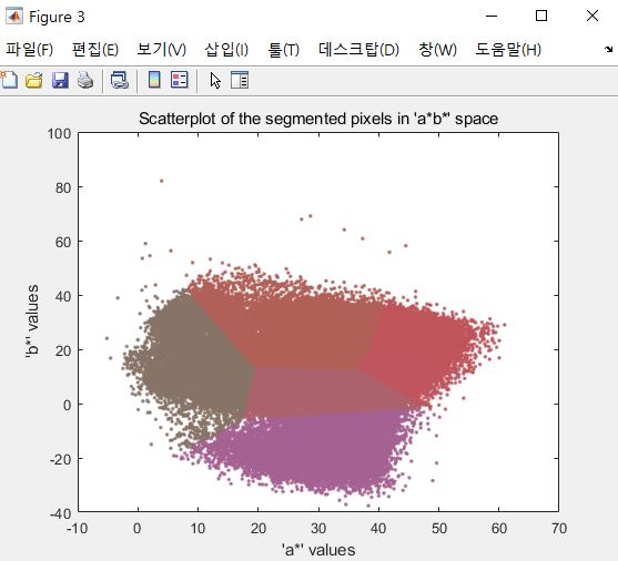 우선 영상을 읽어오고, 몇개의 지역으로 분할 할지 간단하게 설정한 후, rgb2lab ( ) 함수를 이용해 도메인을 변경합니다.