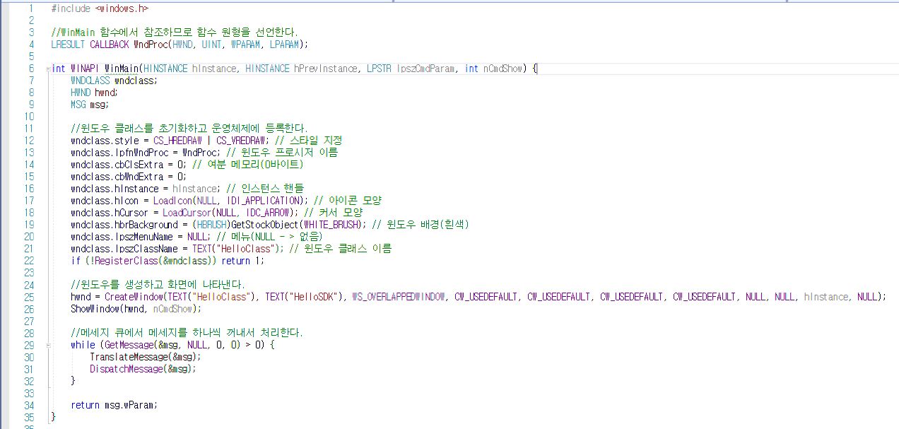 윈도우 프로그래밍 = 윈도우 운영체제(Window Operating System)에서 구동되는 응용프로그램을 만드는 것