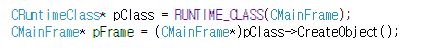 Simple.cpp의 CSimpleApp::InitInstance() 에서 CRuntimeClass::CreateObject() 함수로 생성한다.