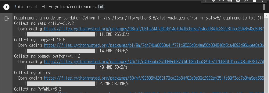 그다음 pip 명령어를 통해서 Yolov5에 관련 필요한 파일을 설치합니다.