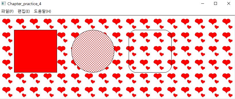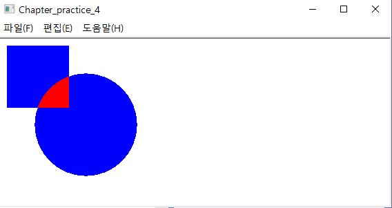 24. Regions 예제 실행 결과에서 겹친 부분을 빨간색(RGB(255, 0, 0)으로 채워지도록 수정하시오.