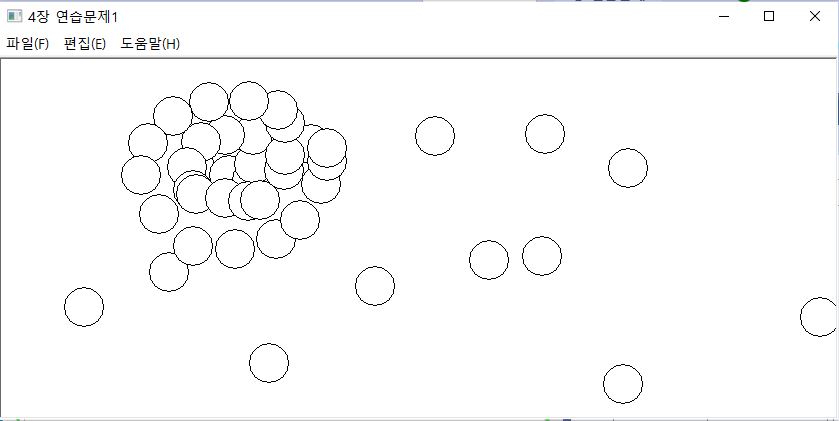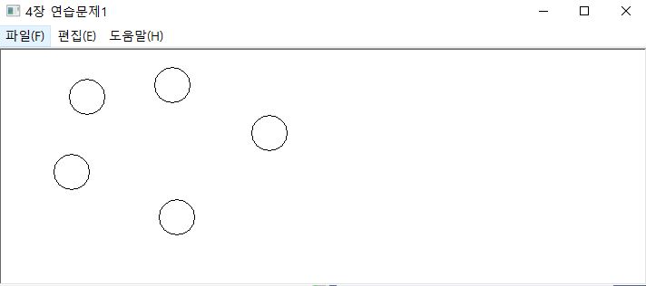 4. ClientDC 예제를 윈도우 크기가 변경되거나 최소화 상태에서 복원되어 윈도우가 다시 그려져도 그렸던 원이 모두 나타나게 수정하시오. 단, 정보는 CArray 클래스를 이용하여 보관한다.