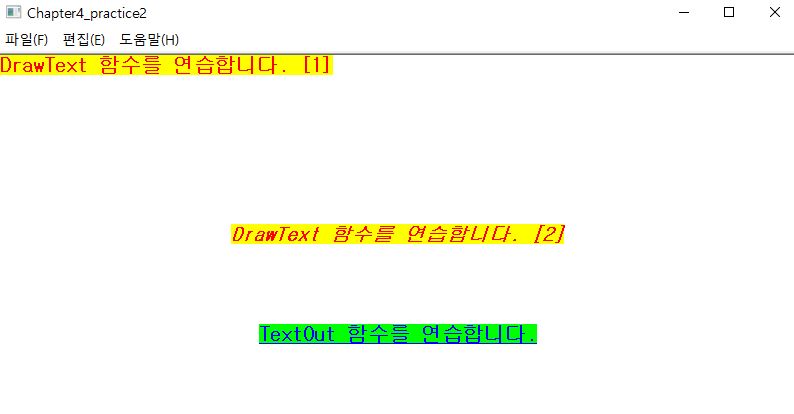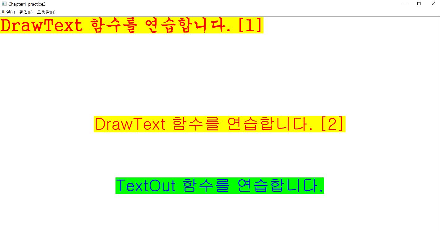 dc.SelectStockObject() 함수를 사용하여 ANSI_FIXED_FONT/ ANSI_VAR_FONT를 사용하여 TextOutW()함수를 통해 출력한다.