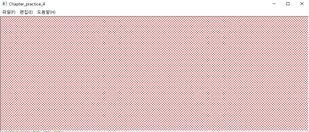 19. Brushes 예제를 수정하여 다음과 같이 클라이언트 영역 배경 전체에 해치 브러시를 출력하도록 수정하시오. 단, 외곽선이 출력되지 않도록 하시오.