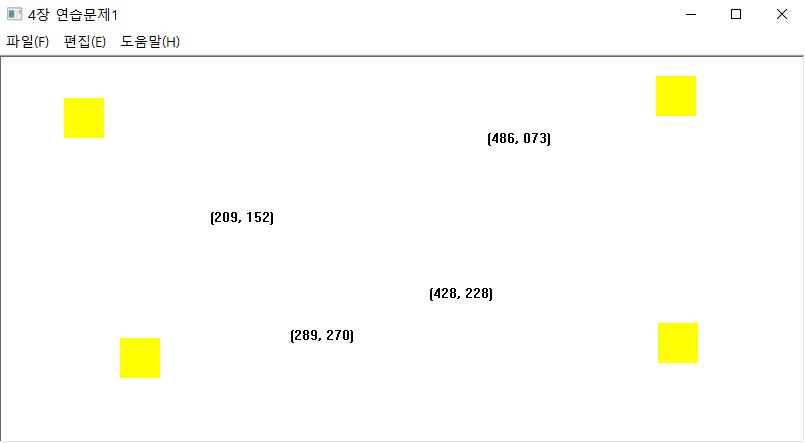CChildView::OnLButtonDown(UINT nFlags, CPoint point) 함수에선 노란 사각형을 찍으면 된다.