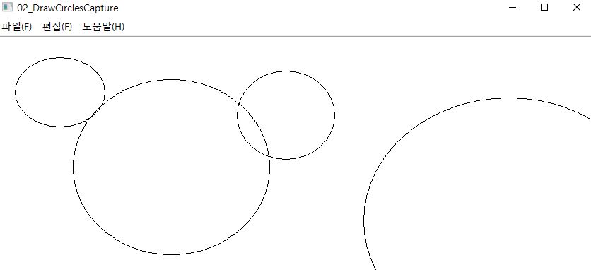 위의 예제에서 마우스가 윈도우를 벗어나도 타원을 그릴 수 있다.