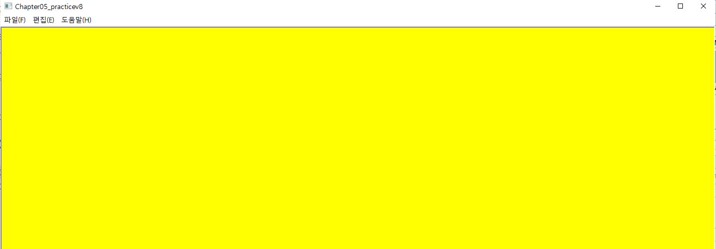 17. TrackMouse 예제를 수정하여, 마우스가 클라이언트 영역에 있으면 클라이언트 배경을 노란색으로 출력하고, 클라이언트 영역 밖에 있으면 흰색으로 출력하시오. 단, 윈도우 크기를 640 X 480으로 고정한다.