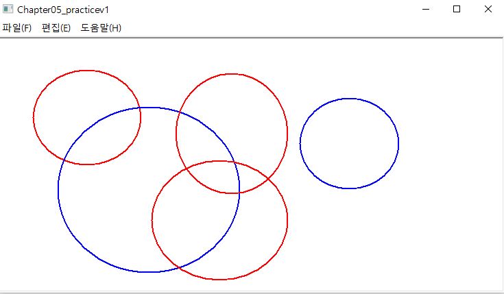 2. DrawCircles 예제를 수정하여, 마우스 왼쪽 버튼을 사용하면 빨간색, 마우스 오른쪽 버튼을 사용하면 파란색으로 원을 그리도록 수정하시오. 단, 마우스 오른쪽 버튼에도 마우스 캡처를 적용한다.