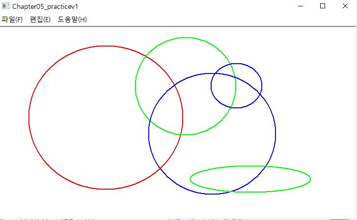 1. DrawCircles 예제를 윈도우가 크기 변경이나 최소화 상태에서 복원되어 다시 그려져도 타원이 모두 나타나도록 수정하시오. 단, 정보는 CList 클래스를 이용하여 보관한다.