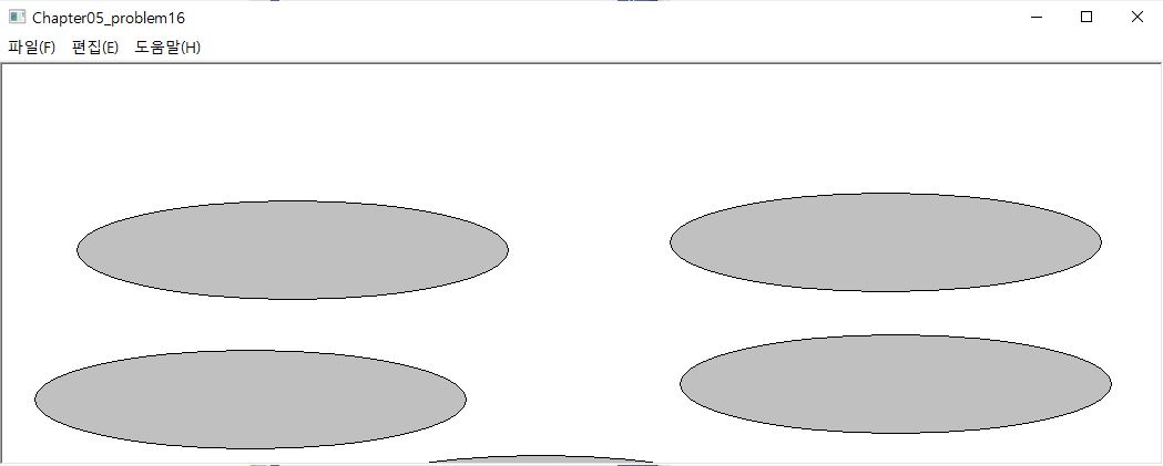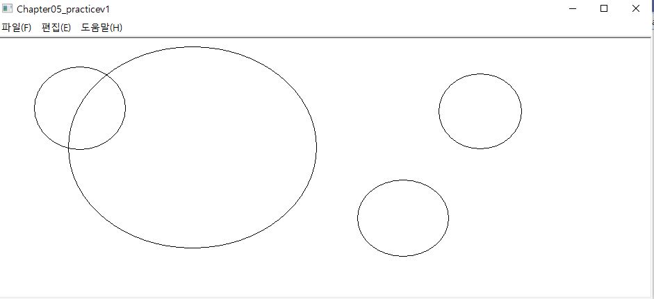 7. DrawCircles 예제에 Insert를 누르면 최종적으로 그려진 타원과 켭치지 않는 새로운 타원이 하나 추가되도록 구현하시오. 단, 윈도우가 크기 변경이나 최소화 상태에서 복원되어 다시 그려져도 타원은 사라지지 않고, 정보는 CList 클래스를 이용해 보관한다.