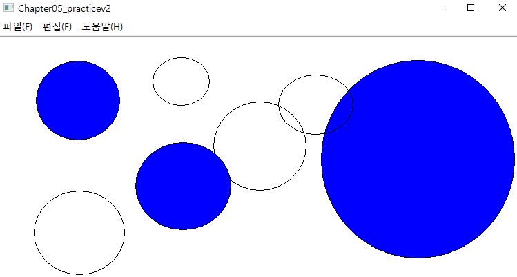 5. DrawCircle 예제를 클릭한 마우스 왼쪽 버튼을 놓을 때 Ctrl 을 누른 상태이면 파란색으로 채워진 타원을 그리도록 수정하시오.