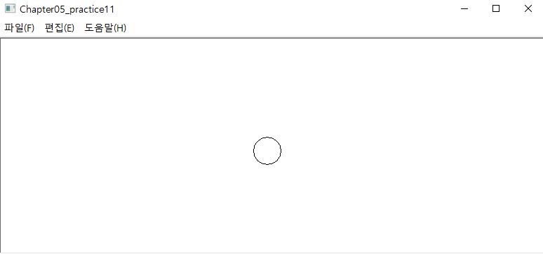 14. ChangeCursor 예제를 수정하여, 마우스 커서가 타원 위에 올라갔을 때, 그림처럼 마우스 커서를 윈도우에서 기본으로 제공하는 손 모양(IDC_HAND)으로 변경하시오.