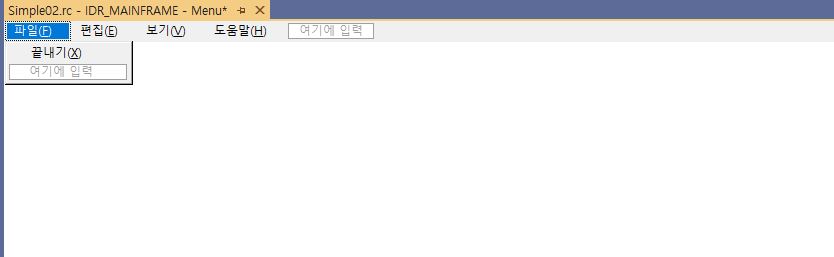 '리소스 뷰'로 전환하여 IDR_MAINFRAME 메뉴 리소스를 연다.