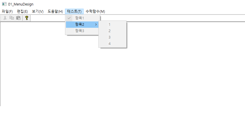- 코드를 이용한 메뉴 생성 : 코드를 실행하여 메뉴를 생성한 후 윈도우에 붙여서 사용한다.