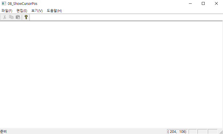 클라이언트 영역의 마우스 커서 좌표를 상태바에 표시하는 프로그램 작성