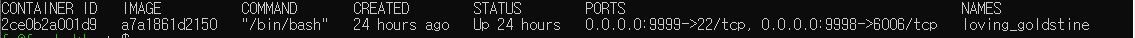 이제 $ docker ps 명령어를 사용하면 아까와는 다르게 생성된 container를 확인할 수 있습니다.