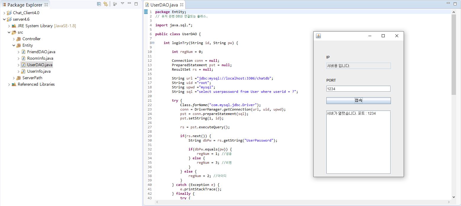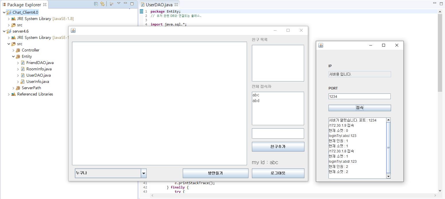 정상적인 채팅이 이루어지는 모습을 확인 할 수 있습니다.