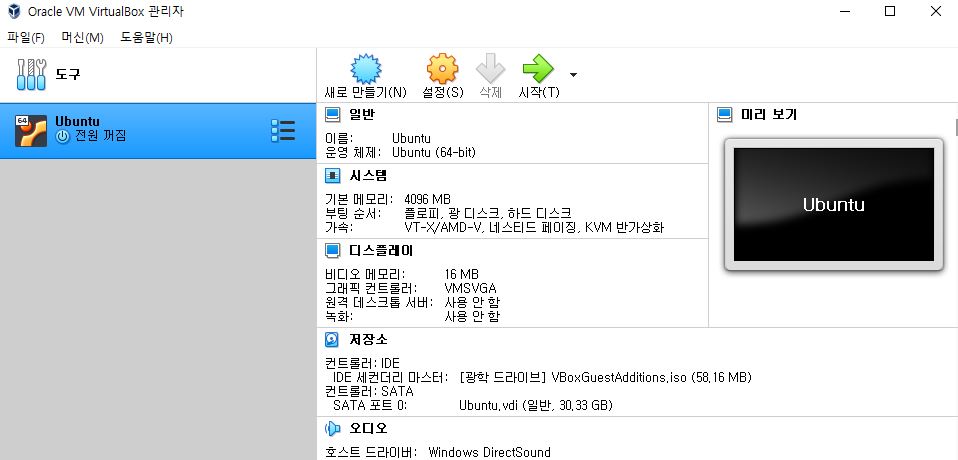 우분투 설치를 완료하시면 기본적으로 virtual box에 대한 setting을 진행해야합니다.