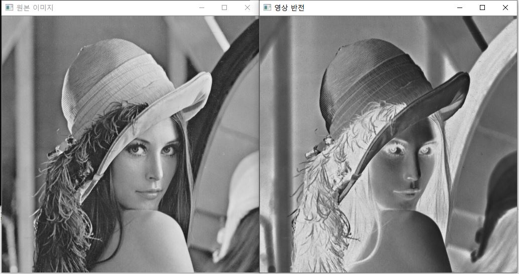 출력 영상 = 255 - 입력 영상