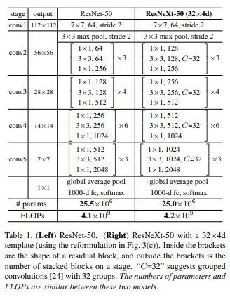 - ResNeXt는 Model의 연산과 Parameter 수를 유지하면서 정확도를 향상 시켰다. 이러한 과정은 실용적일 뿐만 아니라 중요하다. 왜냐하면 Model은 계층 구조에 따라 Parameter 갖기 때문에 이 진행은 Deep Network의 지표가 되기 때문이다.