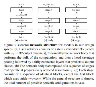 - 초기 AnyNet Design Space 소개한다. Network Blocks(residual bottleneck blocks etc) 포함하여 Network 구조를 탐색한다. Network 구조는