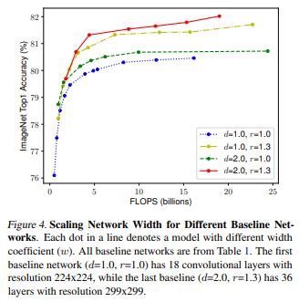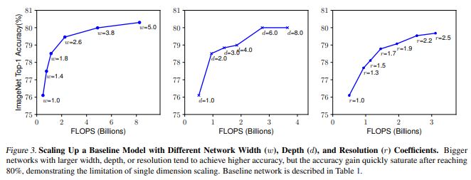 Depth조절하는 방법이다. 또 다른 방법은 Iamge의Resolution늘린다. - 비록 마음대로 (Depth/Width/Resolution) 2개 또는 3개의 Dimension 늘리는 것은 가능하지만, 이런 방식은 반복 작업이 필요로 하고, 차선의 정확성과 효율성을 생산하는 경우가 많다.