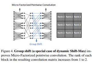 Group간의 연결에 집중한 Micro-Factorized Pointwise Convolution 통해 완성된다.
