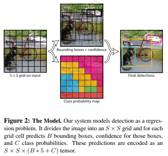 feature사용한다. 또한 모든 class에 대해 동시에 모든 bounding box 예측한다. - 해당 시스템은 input image 대해 S x S grid 나눈다. 객체의 중심은 grid cell에 위치하고,