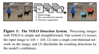 post-processing사용하여 bounding box 재 정의 하고, 다른 객체에 대해 박스에 대한 평가를 진행한다. 이러한 복잡한 pipelines은 각각의 구성 요소가 분리되어 학습되기 때문에 느리고 최적화 하기 힘들다. - YOLO 사용하면 image에서 객체를 찾고 위치까지 찾는다. Figure 1 참고하면 single convolutional network는 다중