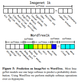 world graph 구조를 사용하는 것 대신에, ImageNet 개념으로부터 hierarchical tree 설계하여 문제를 간단하게 한다. 최종 결과는 WordTree 이며, 계층 모델이다.