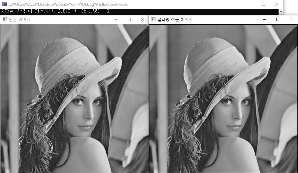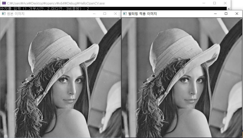 #미디언 필터링은 영상의 소금 후추 잡음에 탁월하다.