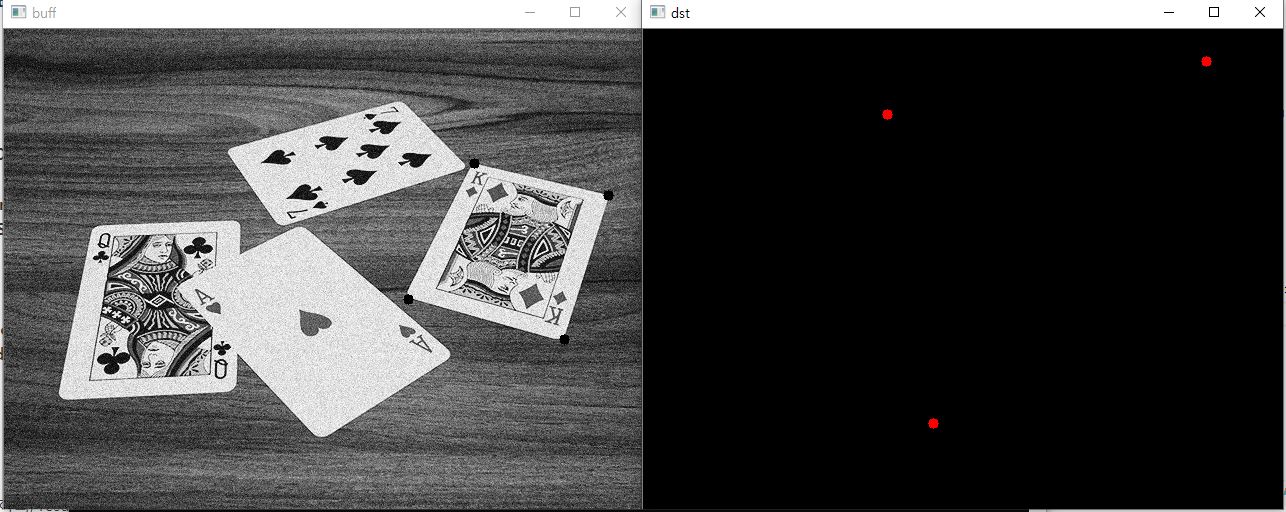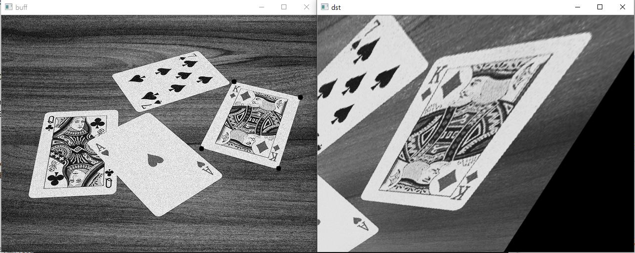 목적 영상에 4점을 찍으면 그 점으로 Transform이 적용된다. 또한 영상에대한 잡음제거도 적용된다.