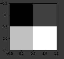 plt.subplot(1,2,i+1), plt.imshow(one_img.reshape(2,2), cmap='gray')