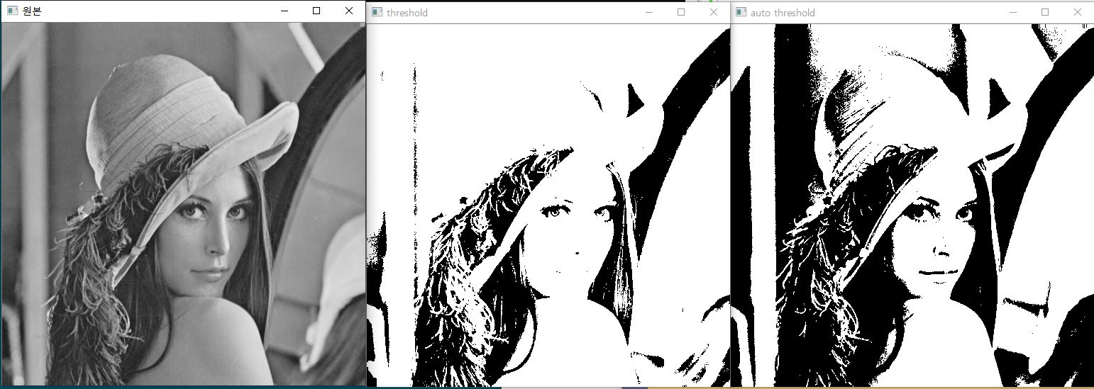 영상의 픽셀 값을 0 또는 255로 만드는 연산