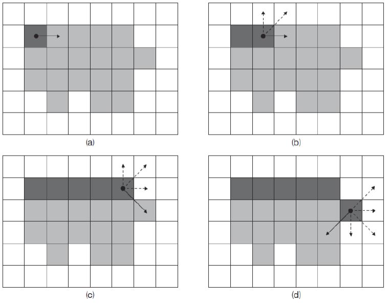 객체의 경계선 추적(boundary tracing)이라고도 함