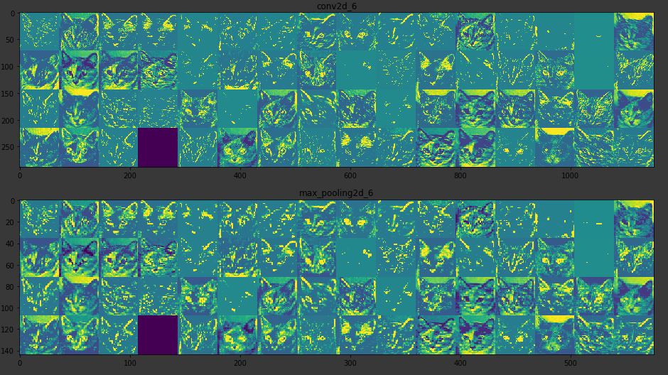 입력이 들어올때, 네트워크에 있는 여러 합성곱과 풀링 층이 출력하는 출력을 그리는 것.
